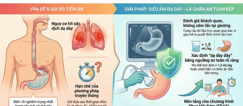 BS CKII Huỳnh Văn Bình Khoa Gây mê hồi sức Bệnh viện Nhân dân Gia Định Trong gây mê hồi sức, một trong những biến cố nghiêm trọng nhất là hít sặc dịch dạ dày trong quá trình khởi mê/đặt ống nội khí quản, có thể dẫn đến viêm phổi hít, suy hô hấp và […]