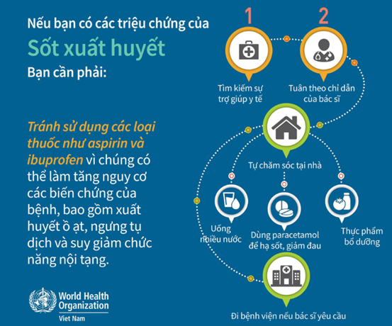 - Hiện nay, sốt xuất huyết Dengue chưa có thuốc điều trị đặc hiệu. Người bệnh cần uống nhiều nước, hạ sốt bằng paracetamol, nhận biết các dấu hiệu bệnh nặng, theo dõi tại cơ sở y tế khám chữa bệnh mỗi ngày và nhập viện khi có chỉ định.