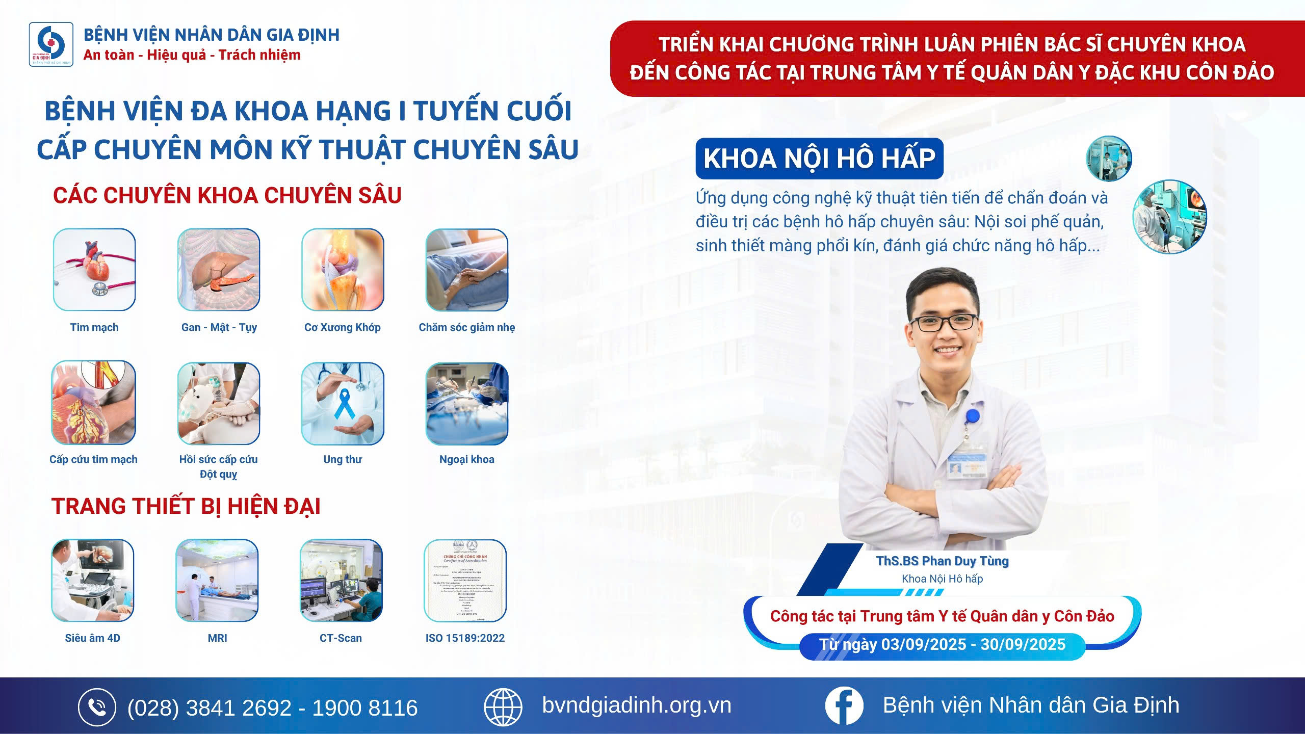 Hưởng ứng chương trình luân phiên bác sĩ chuyên khoa đến công tác tại Trung tâm Y tế Quân dân y đặc khu Côn Đảo giai đoạn từ nay đến năm 2030 do Sở Y tế TP.HCM triển khai, ThS.BS Phan Duy Tùng, Khoa Nội Hô hấp, Bệnh viện Nhân dân Gia Định tình nguyện đăng ký tham gia đợt công tác lần này.