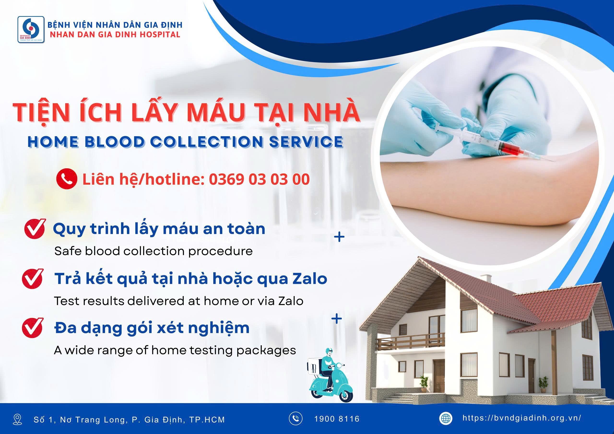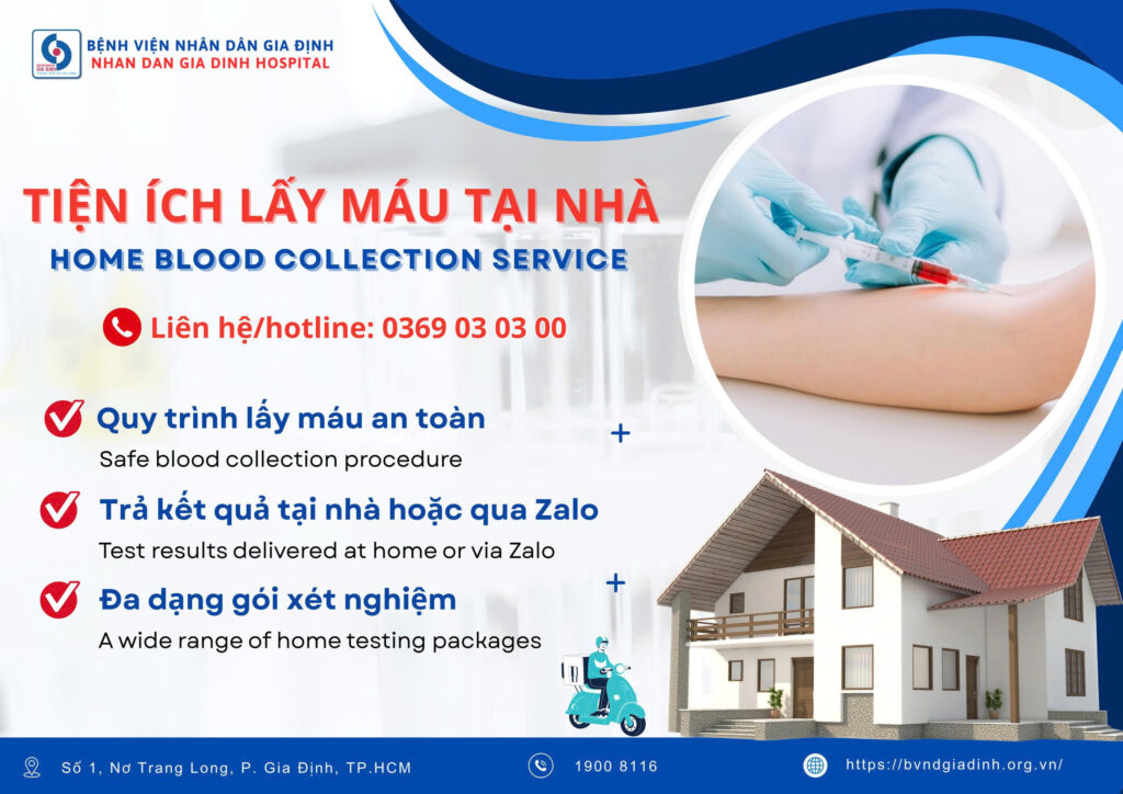 Chỉ cần gọi ngay số 0369.03.03.00, đội ngũ y tế chuyên nghiệp của Bệnh viện Nhân dân Gia Định sẽ đến tận nơi lấy mẫu – giúp bạn kiểm tra sức khỏe định kỳ dễ dàng hơn bao giờ hết.
