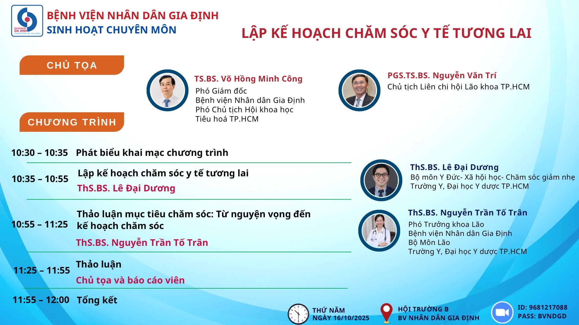 Bệnh viện Nhân dân Gia Định tổ chức chương trình sinh hoạt chuyên môn “Lập kế hoạch chăm sóc y tế tương lai” với những nội dung sau: