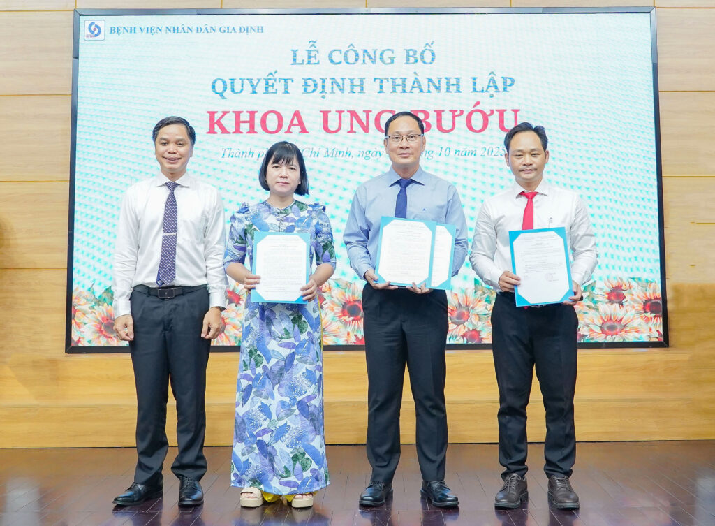 Sáng ngày 10/10/2025, tại Hội trường B, Bệnh viện Nhân dân Gia Định long trọng tổ chức lễ công bố quyết định thành lập Khoa Ung bướu, đánh dấu bước phát triển quan trọng trong lĩnh vực điều trị ung thư tại bệnh viện.