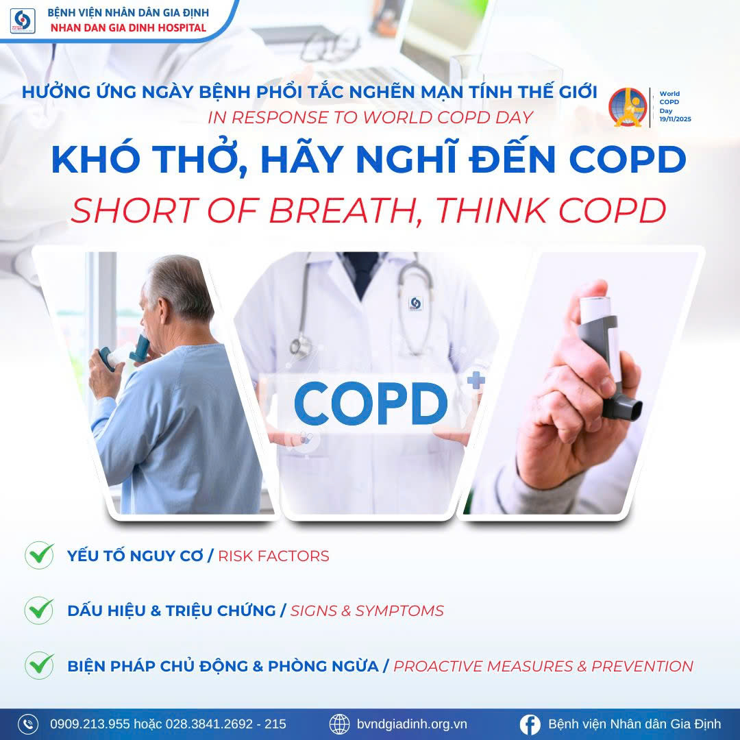 HƯỞNG ỨNG NGÀY BỆNH PHỔI TẮC NGHẼN MẠN TÍNH THẾ GIỚI 19/11/2025: “SHORT OF BREATH, THINK COPD” – “KHÓ THỞ, HÃY NGHĨ ĐẾN COPD”