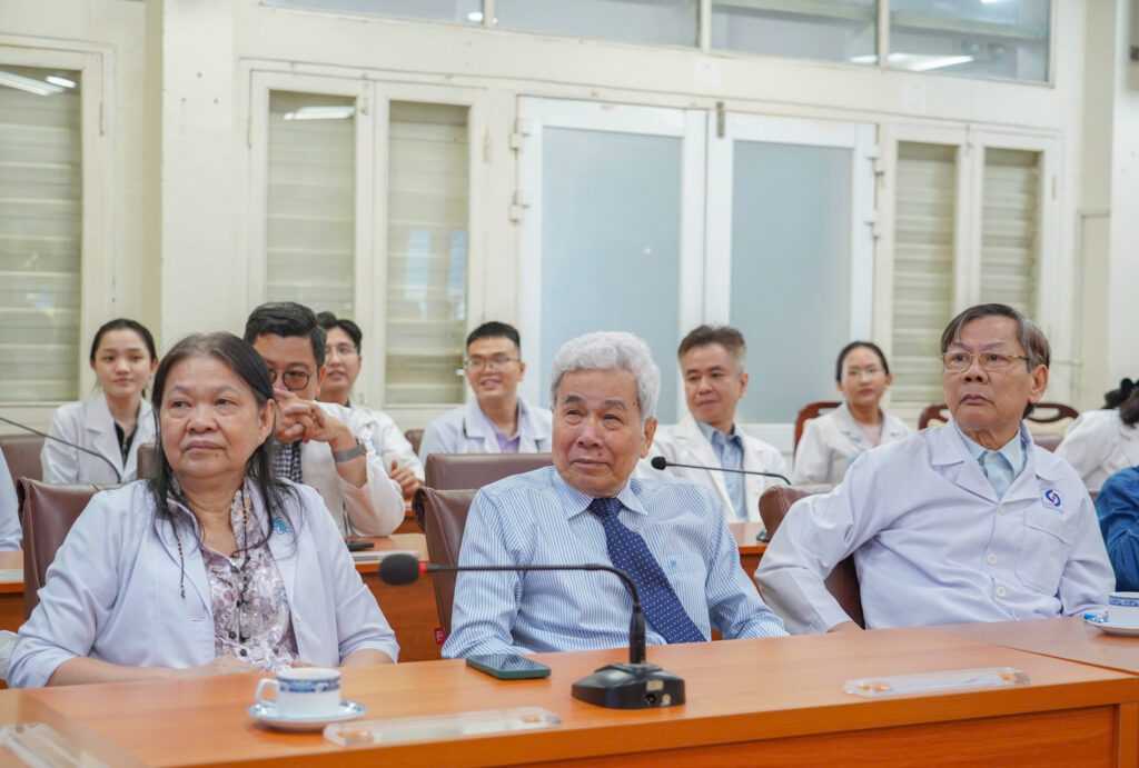 Buổi lễ vinh dự đón tiếp các thầy cô là chuyên gia đầu ngành y học, những người có nhiều đóng góp trong công tác giảng dạy và phát triển chuyên môn của bệnh viện. Trong đó có sự hiện diện của: PGS.TS.BS Nguyễn Thế Hiệp, BS.CK2 Đỗ Hoàng Giao, PGS.TS.BS Hoàng Quốc Hòa – nguyên Giám đốc Bệnh viện Nhân dân Gia Định; BS.CK1 Nguyễn Thanh Minh – nguyên Phó Giám đốc bệnh viện; PGS.TS.BS Châu Ngọc Hoa – cố vấn khoa Nội tim mạch; PGS.TS.BS Nguyễn Thị Thanh – cố vấn khoa Gây mê hồi sức; TS.BS Nguyễn Thị Thanh Hà – cố vấn khoa Kiểm soát nhiễm khuẩn… cùng Ban giám đốc, các giảng viên và lãnh đạo các khoa phòng.