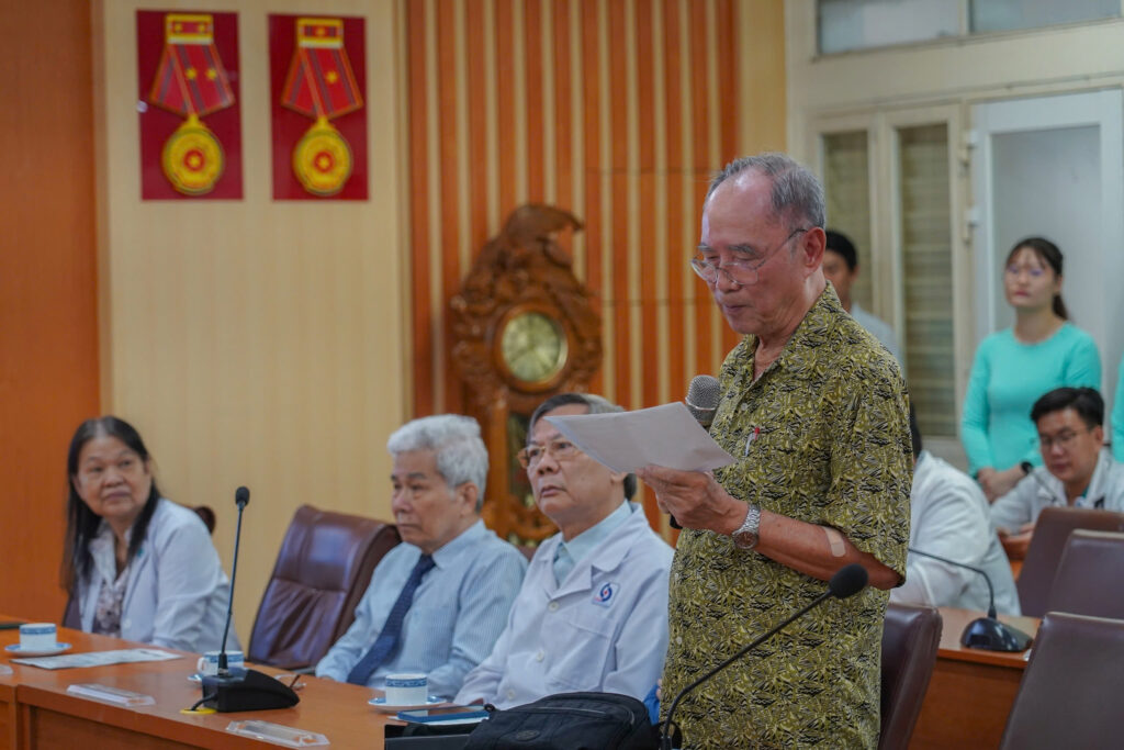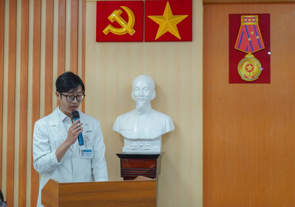 Đại diện thế hệ trẻ, BS Nguyễn Thế Vinh, bác sĩ nội trú của bệnh viện bày tỏ niềm xúc động và biết ơn. Anh chia sẻ rằng những bài học quý giá nhất không chỉ đến từ sách vở mà từ chính sự tận tâm, sắc sảo, lòng trắc ẩn và y đức của các thầy cô, những tấm gương sống động tại bệnh viện.