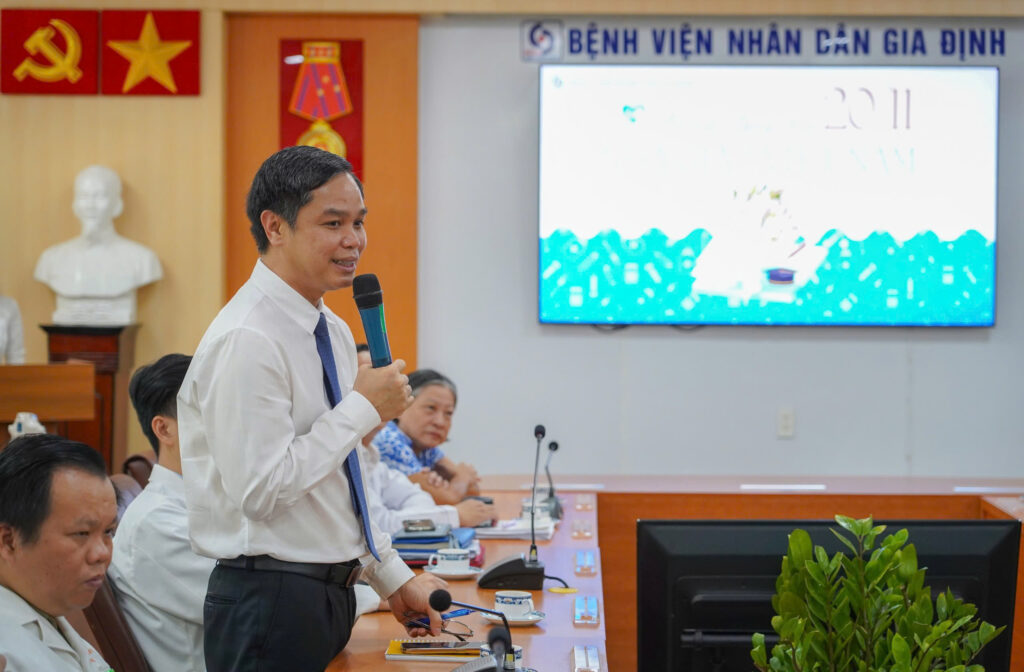 Trong không khí thân mật, BS.CK1 Nguyễn Thanh Minh gửi gắm đến các bác sĩ, điều dưỡng, nhân viên bệnh viện cùng các học viên, sinh viên đang học tập tại Bệnh viện Nhân dân Gia Định lời nhắn nhủ: cần phát huy tinh thần đoàn kết giữa các thế hệ, không ngừng học tập và nâng cao năng lực chuyên môn.
