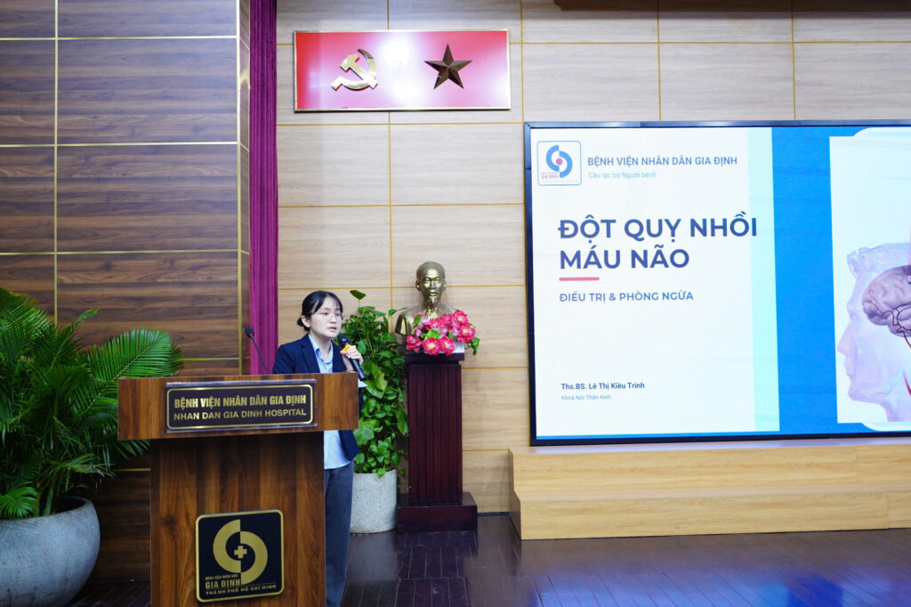 Sáng 28/12/2025, tại Hội trường B, Bệnh viện Nhân dân Gia Định, buổi sinh hoạt Câu lạc bộ người bệnh đột quỵ với chủ đề “Hiểu và xử trí kịp thời khi bị đột quỵ?” đã diễn ra trong không khí trang trọng, ấm áp và đầy ý nghĩa. Chương trình thu hút đông đảo người bệnh, thân nhân tham gia. Buổi sinh hoạt do Khoa Nội Thần kinh, Bệnh viện Nhân dân Gia Định tổ chức, nhằm cung cấp kiến thức y khoa chính thống, dễ hiểu, giúp người bệnh và cộng đồng nâng cao nhận thức về đột quỵ, một trong những nguyên nhân hàng đầu gây tử vong và tàn phế hiện nay.