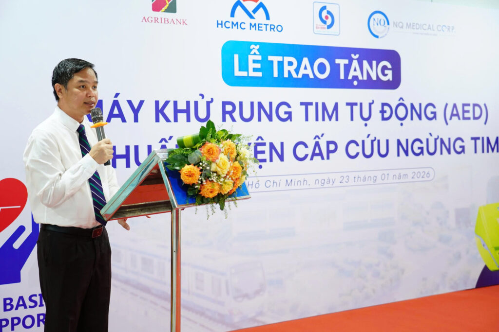 BỆNH VIỆN NHÂN DÂN GIA ĐỊNH TRAO TẶNG MÁY KHỬ RUNG TIM TỰ ĐỘNG AED – LAN TỎA “THỜI GIAN VÀNG” CẤP CỨU NGỪNG TIM TẠI TUYẾN METRO SỐ 1