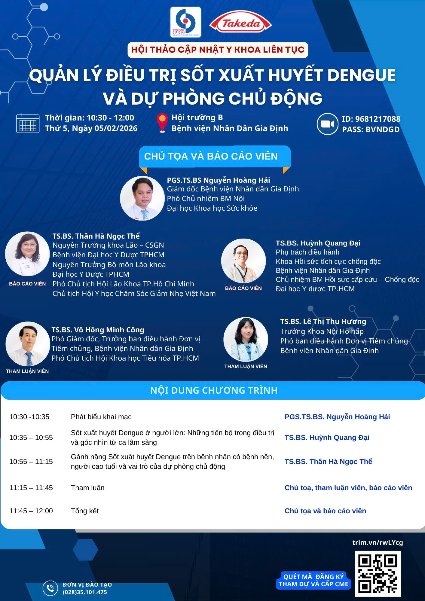 Bệnh viện Nhân dân Gia Định tổ chức chương trình cập nhật y khoa liên tục chủ đề “Quản lý điều trị sốt xuất huyết dengue và dự phòng chủ động” với những nội dung sau: