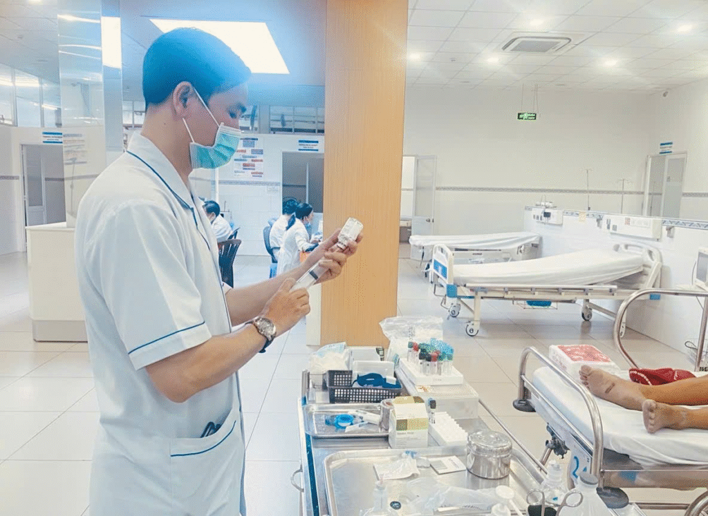 Ngay khi tiếp nhận, Khoa Hồi sức Cấp cứu – Bệnh viện Nhân dân Gia Định cơ sở 2 (Chi nhánh Sài Gòn) đã nhanh chóng thăm khám, đánh giá lâm sàng, kích hoạt quy trình Stroke Code và thực hiện các chẩn đoán hình ảnh cần thiết nhằm loại trừ xuất huyết não, đánh giá khả năng tái thông mạch. Trên cơ sở đó, người bệnh được chỉ định và truyền thuốc tiêu sợi huyết Actilyse (alteplase) ngay tại cơ sở 2, bảo đảm tận dụng tối đa thời gian vàng trong điều trị đột quỵ.