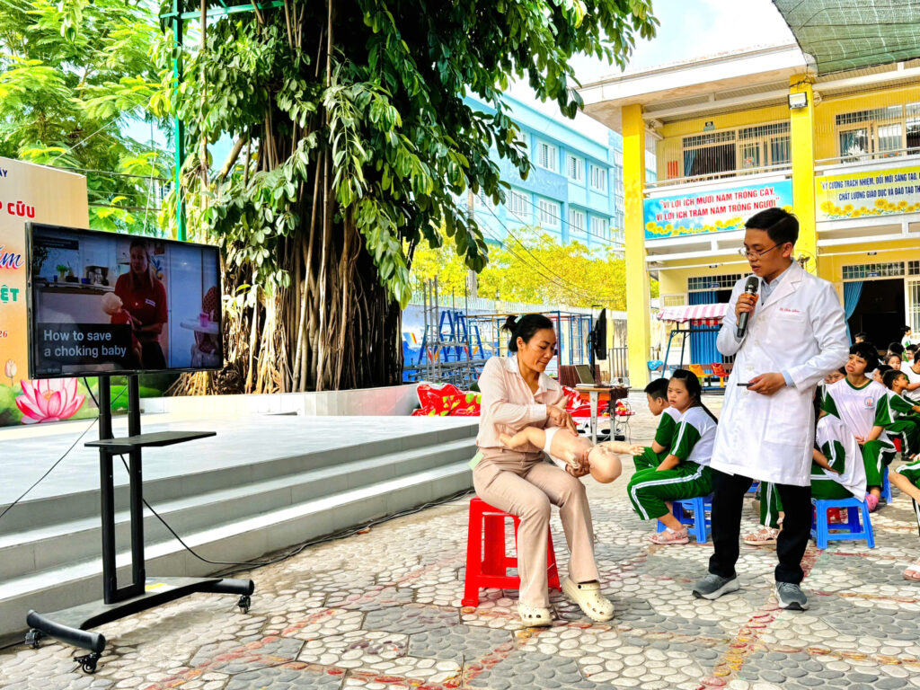 Chương trình được triển khai nhằm hướng dẫn nghiệp vụ sơ cấp cứu cho giáo viên, giúp trang bị thêm kiến thức và kỹ năng cần thiết trong quá trình chăm sóc trẻ em, bảo đảm an toàn và kịp thời xử trí các tình huống phát sinh tại trường học.