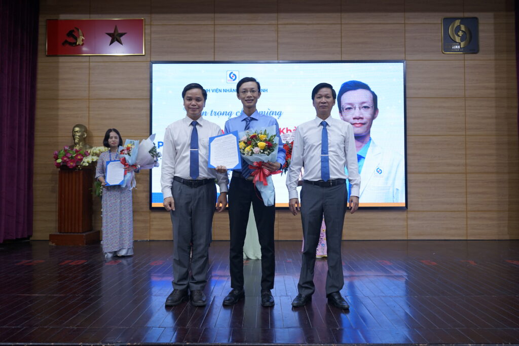 Tại buổi lễ, TS.BS Nguyễn Hoàng Hải – Giám đốc bệnh viện; BS.CKII Đinh Hữu Hào – Phó Giám đốc bệnh viện và phòng Tổ chức cán bộ đã trao quyết định bổ nhiệm các chức vụ: