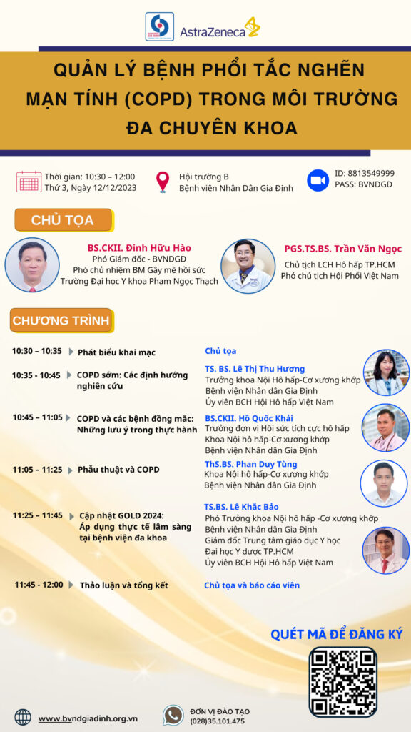 Bệnh viện Nhân dân Gia Định tổ chức chương trình cập nhật y khoa liên tục chủ đề “Quản lý bệnh phổi tắc nghẽn mạn tính (COPD) trong môi trường đa chuyên khoa” với những nội dung sau: