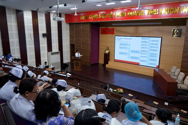 Trong buổi lễ, ThS. Mai Chí Công – Trưởng khoa Kiễm soát nhiễm khuẩn đã giới thiệu khái quát về Ngày vệ sinh tay thế giới 5/5 và những mục tiêu trong năm 2024. Bên cạnh đó, TS.BS Mai Phan Tường Anh – Phó Giám đốc bệnh viện cũng trình bày nội dung về “Định hướng công tác vệ sinh tay trong bệnh viện”, khẳng định tầm quan trọng của vệ sinh tay góp phần giảm thiểu nhiễm khuẩn bệnh viện, giảm tình trạng kháng kháng sinh. Đồng thời nhấn mạnh vai trò, ý thức trách nhiệm của nhân viên y tế đối với cá nhân và cộng đồng trong việc vệ sinh tay. Qua đó tạo thói quen duy trì vệ sinh tay trong công việc tại bệnh viện và cuộc sống hằng ngày.