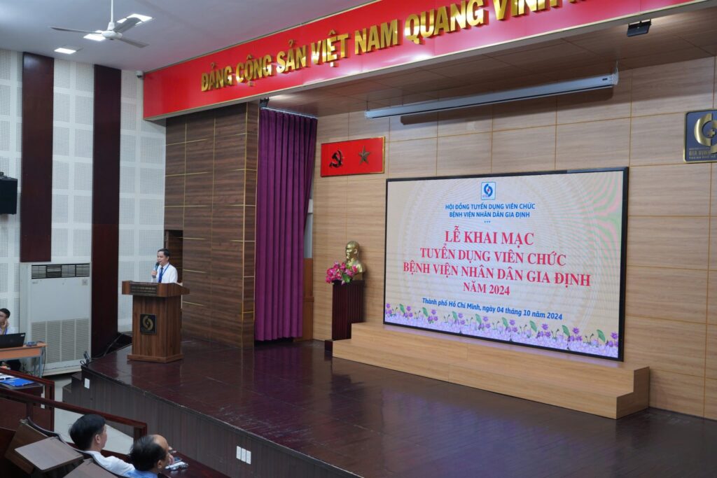 Sáng nay, ngày 04/10/2024, tại Hội trường B – Bệnh viện Nhân dân Gia Đinh đã tổ chức lễ khai mạc kỳ tuyển dụng viên chức năm 2024. Gần 230 thí sinh lọt qua vòng sơ tuyển đã đến dự lễ khai mạc và nghe phổ biến quy chế, nội dung và thời gian tuyển dụng.