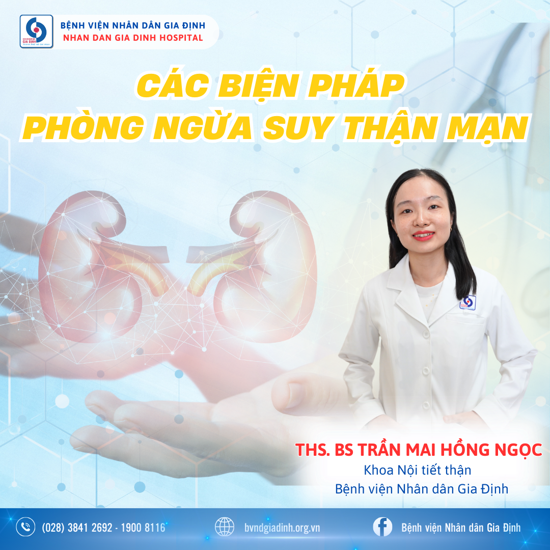 Theo Ths.Bs Trần Mai Hồng Ngọc, khoa Nội tiết thận, Bệnh viện Nhân dân Gia Định, để phòng ngừa suy thận mạn, chúng ta phải kiểm soát tốt các yếu tố nguy cơ gây phát sinh bệnh. Sau đây là 9 phương pháp có thể giúp phòng ngừa suy thận mạn.